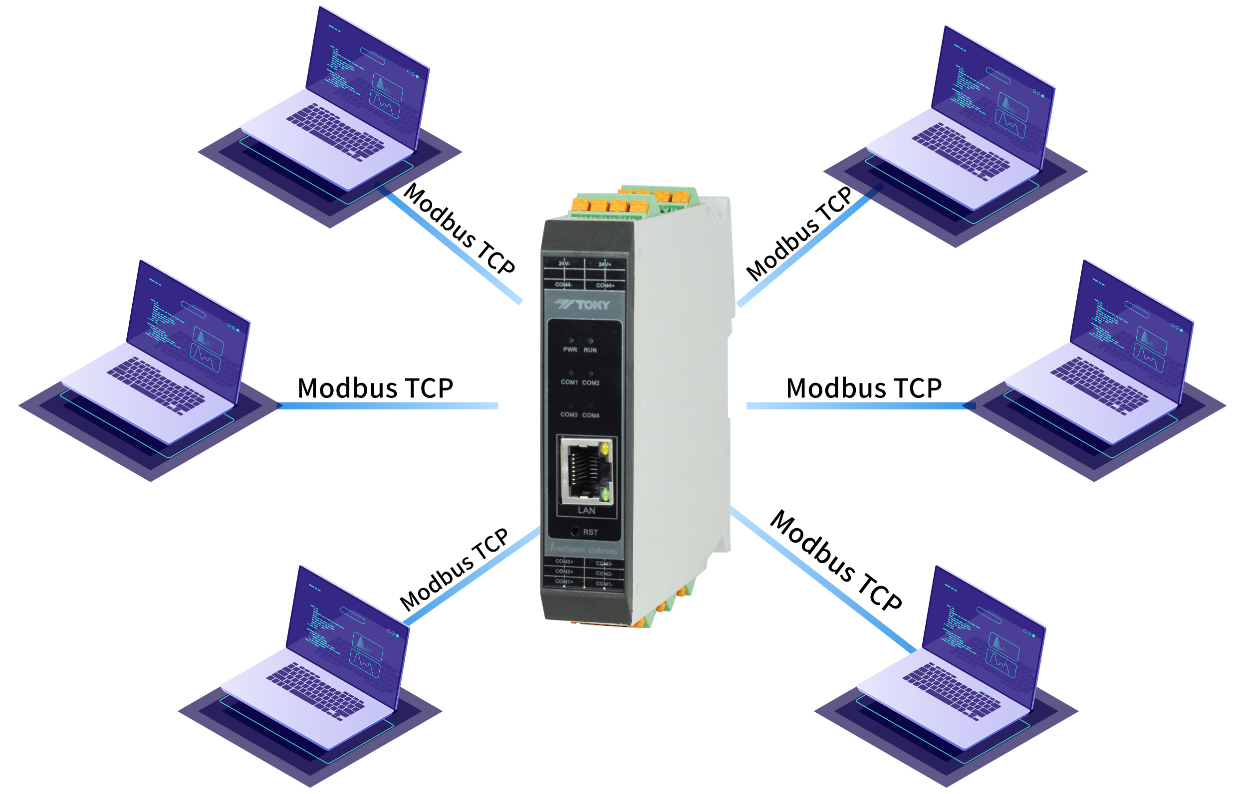 7.允许多个Modbus TCP主设备通过单一网关并发访问RTU从设备,增强系统扩展性。