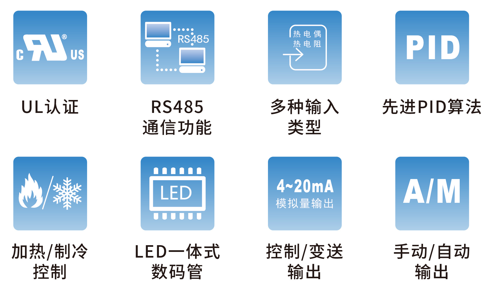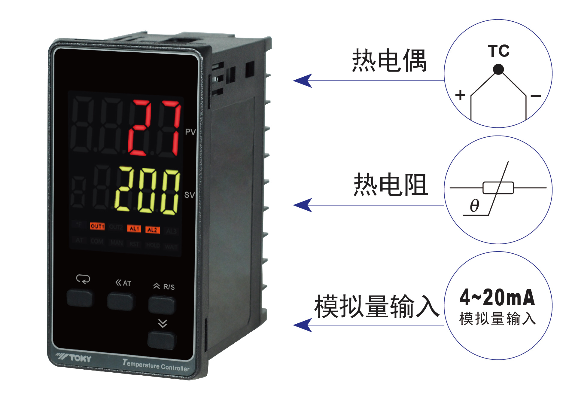 支持常用热电偶/热电阻,可订制4~20mA/0~10V模拟信号输入,升级长导线补偿功能,支持热电偶/热电阻长导线连接。