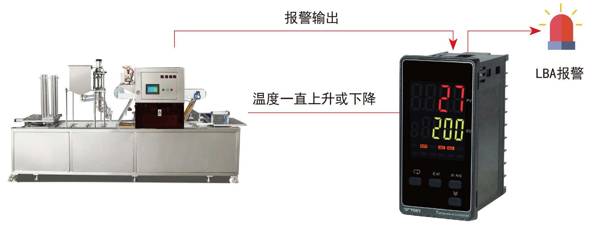 当控制器一直输出为开或关,但温度一直上升或下降,说明显示与控制逻辑相冲突,在达到一定时间或温度限值时触发LBA报警