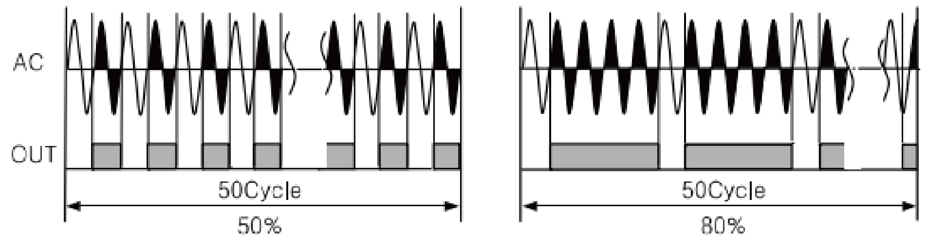 变周波控制输出,根据输出量百分比的大小自动调节导通正弦波的多少,负载在极短时间内得到平均分配的导通波形,从而让负载发热平均,发光均匀。
