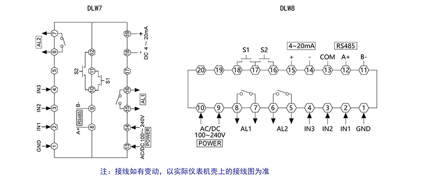 DLW□-IRC18A2 | 两路报警 | 4~20mA | 有 | 有 | IN1:2A.IN2:0.2A.IN3:0.02A | B0515DLW01 |