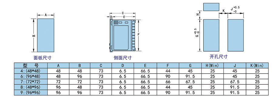 □:确省“空”输入信号为TC/RTD/mV/Rt;选“X”输入信号4~20mA/0~10V ●:标准配置功能 ◎:有此功能但与其他功能复用,本系列控制器只有一路D0 4~20mA输出但可以通过ACT菜单配置用于主控输出或变送输出。 |