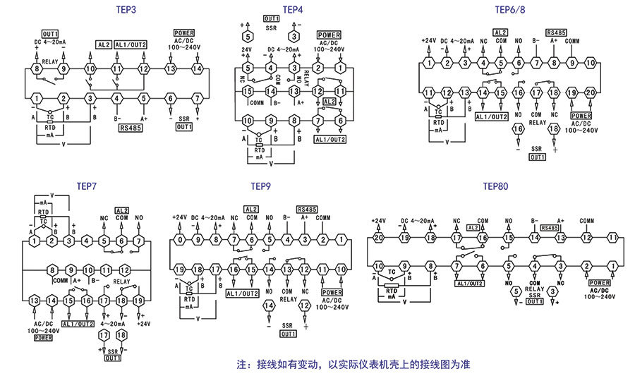 TEP□-R/SC10W | 16组程序段 | R:继电器输出S:固态逻辑输出1:4~20mA变送输出D:4~20mA调节输出 | 2 | 无 | 无 | B0410TEP01 |