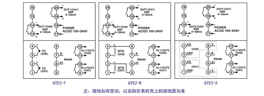 GTE2-DC20T/R/X | 4~20mA | 无 | 2 | 与控制复用 | B0580GTE01 |