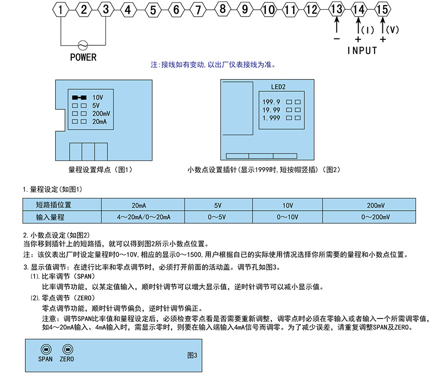 满量程可调整范围 | 输入 10V/20mA 1000~1999 |