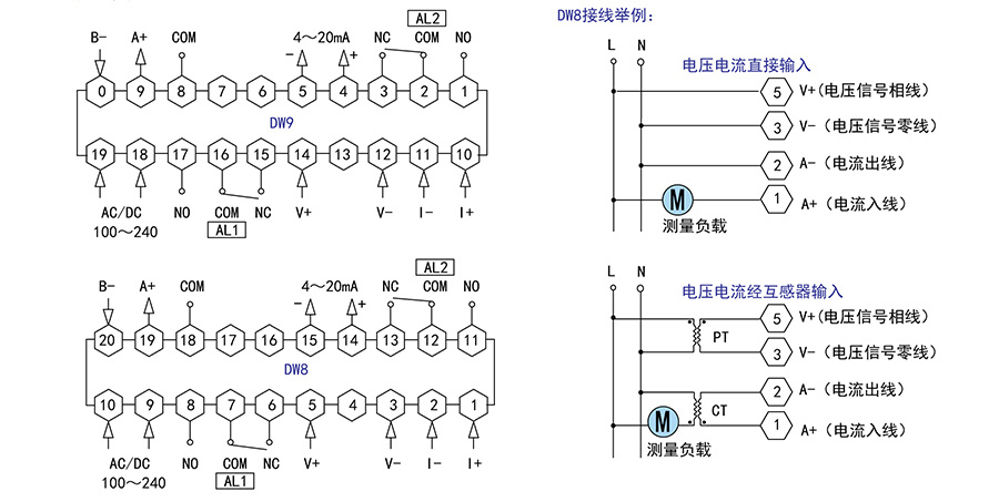 DW8/9-A10DA/B | 无 | 无 | 无 | DC B:75mVx450V | 电压/电流/功率/电度 | B0360DW03 |