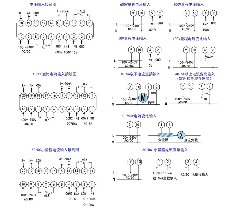 DL8/9A-IA10A1000 | 无 | 4~20mA | 无 | AC0~5A、DC0~75mV二通道输入(变比显示) | B0420DL01 |