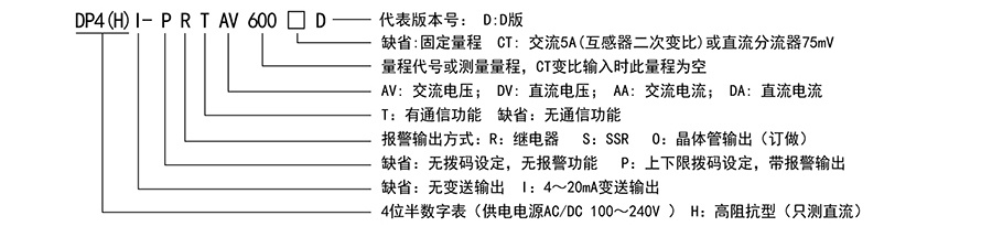 DP4H-DV/DA□(D) | 高阻抗型 | 无 | 无 | 无 | DV(直流电压):0.02/0.2/2/6/20V DA(直流电流):200uA/2mA/20mA | A1100DP03 |