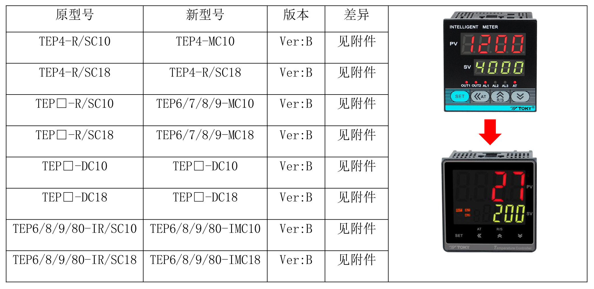 由于公司产品发展需要,现决定对TEP系列温控表由A版升级到B版本,通告如下: